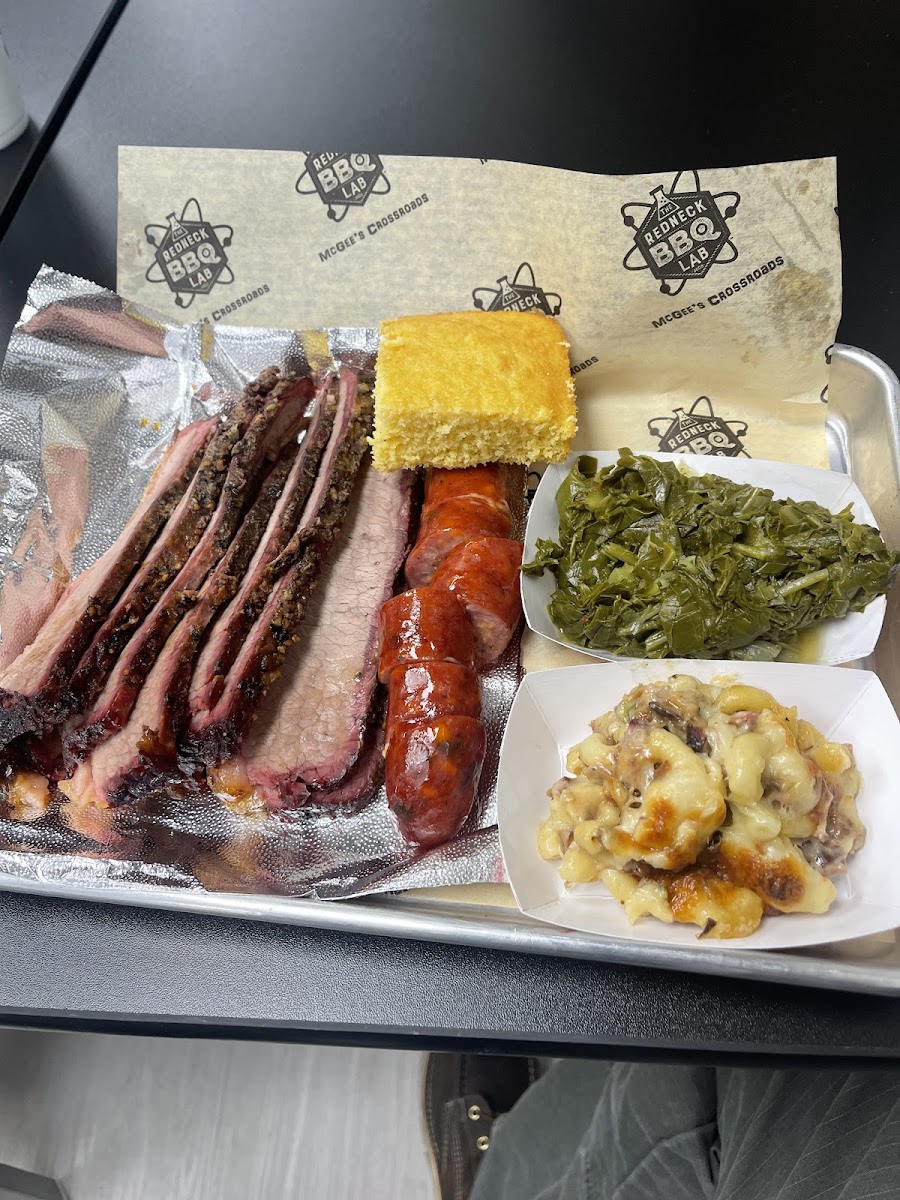 Food is delicious. Bbq sandwich, brisket mac and cheese, collards, corn bread. All very good. Staff is friendly. We also loved the bluegrass music. We will be back! Highly recommend Redneck BBQ Lab!