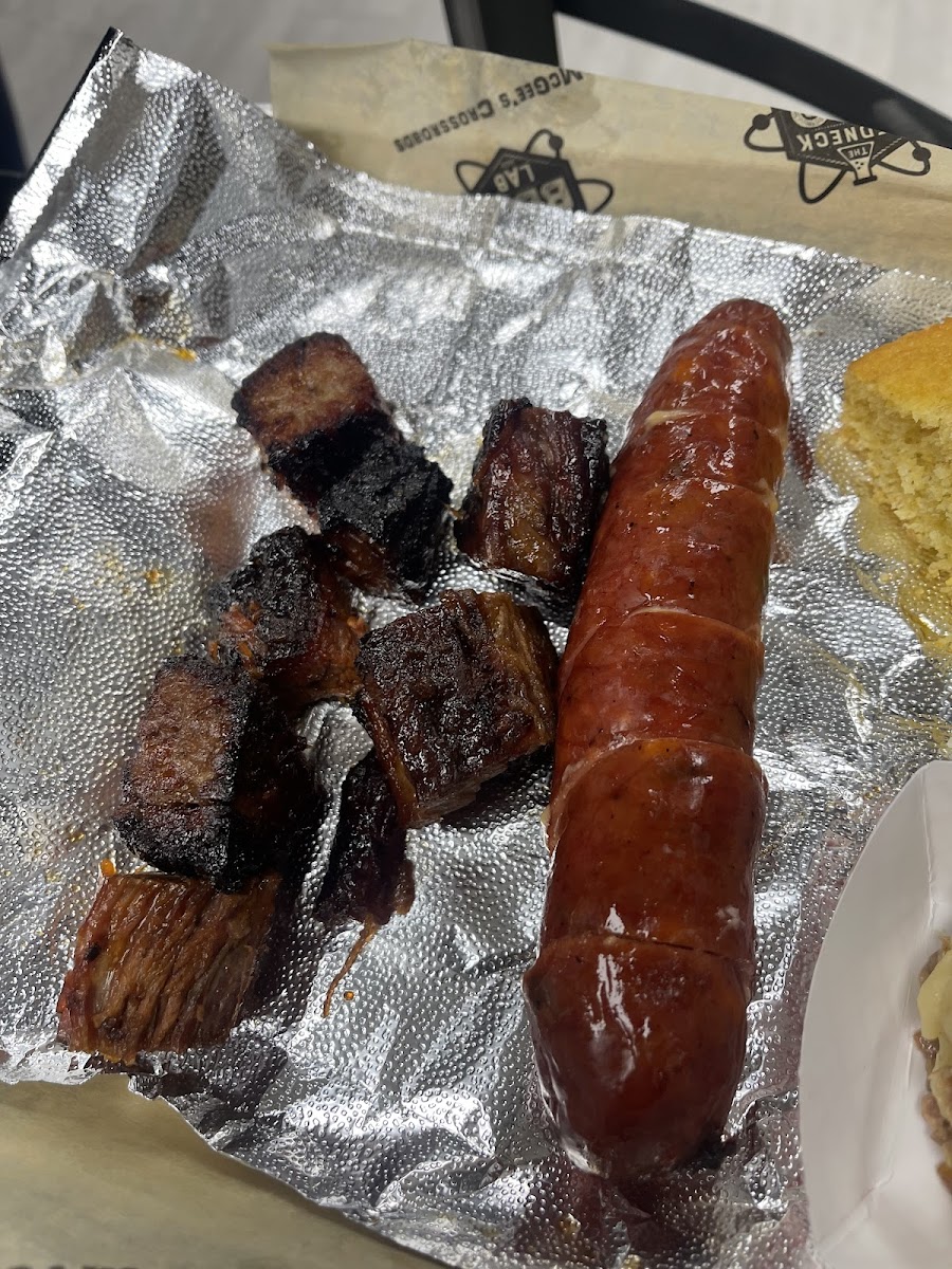My wife and I went here today. We got a pound of burnt ends and the sides we got were coleslaw, bbq potatoes, green beans, and mac n cheese. The burnt ends were moist and flavorful. The sides we got were all top notch. We saved the cornbread for later as we like ours buttered. Overall, fantastic food!
