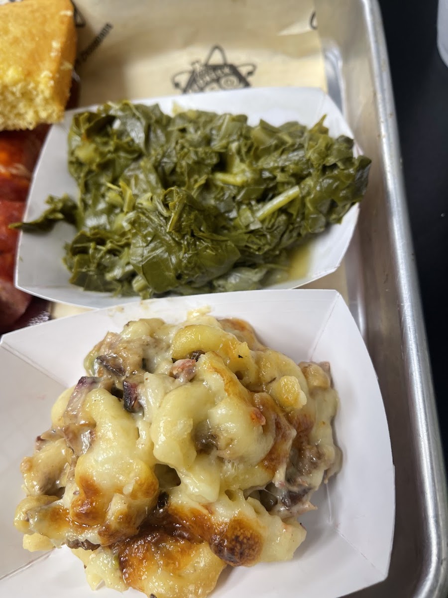 It was so good to have BBQ in Carteret County. Delicious brisket and smoked chicken and pork BBQ. The sauce came in little cups and I definitely could've used more. The sides, omg thank God, were definitely the accompaniment needed for the heavenly meat. Tried the jalapeno mac and cheese, which was my least favorite as I like spicy and only found 1 tiny piece of jalapeno. The collards were nearly perfect. Salty but I guess they have to be. The baked beans are excellent. Top tier. Corn bread was yummy. I will definitely return. Give them a go please.
